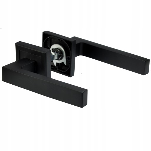 Komplet klamek z rozetami kwadratowymi pod klucz, pod wkładkę patentową lub pokrętłem łazienkowym