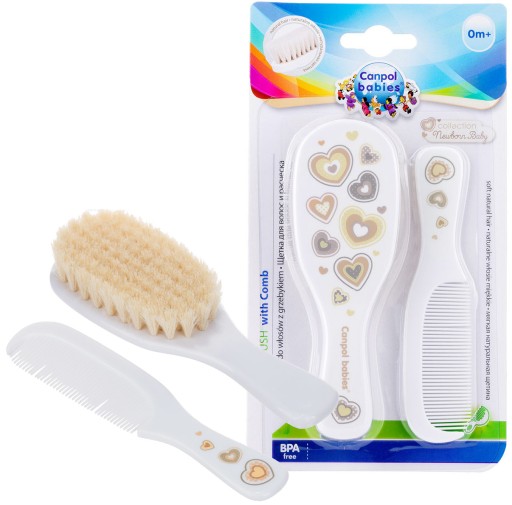 Canpol Babies szczotka do włosów + grzebyk z naturalnym włosiem