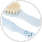 Szczotka do włosów z naturalnego, miękkiego włosia w zestawie z grzebykiem NEWBORN BABY do codziennej pielęgnacji włosów dziecka. Grzebień posiada zaokrąglone ząbki, które nie podrażniają wrażliwej skóry malucha. Szczotka delikatnie masuje główkę dziecka wzmacniając włosy. Idealna od pierwszych dni po urodzeniu.