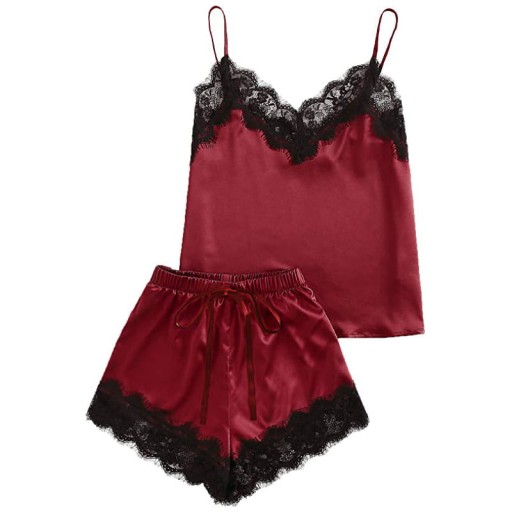 АТЛАСНАЯ НОЧНАЯ ХИМИЯ ПИЖАМА С ШОРТАМИ, бордовый ALITA