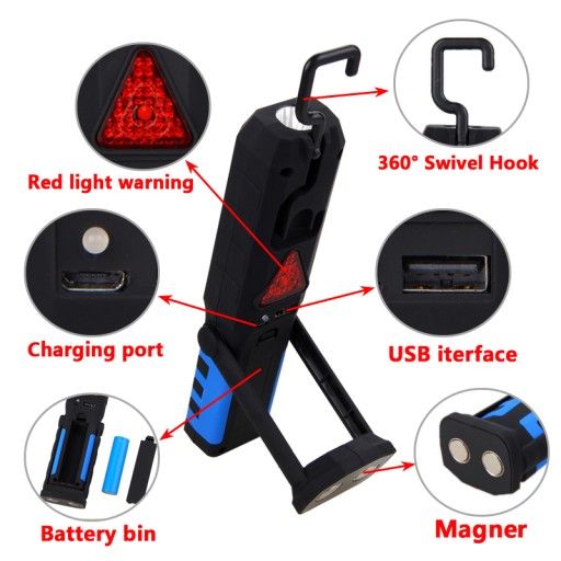Lampa LED z wbudowanym akumulatorem oraz 3 trybami świecenia. Bardzo wygodna w użytkowaniu obudowa składany obrotowy haczyk do zawieszania lampy oraz ruchoma podstawa z wbudowanymi dwoma bardzo mocnymi magnesami.