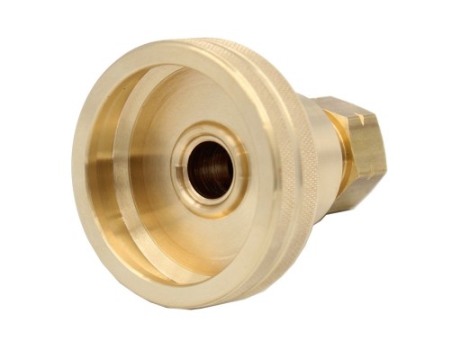 Końcówka składa się z dwóch części. Właściwej przejściówki i redukcji średnic. Gdy obie części są skręcone możemy napełnić małe turystyczne butle. Po wykręceniu redukcji duże butle 11 kg.