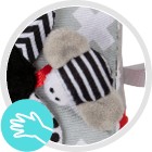 Zabawka jest idealna do nauki chwytania i odkrywania ciekawych nowych dźwięków. Zabawna pszczoła na rzep, pozwala na trenowanie odczepiania i przyczepiania elementów przez maluszka. Posiada gryzak, piszczek, grzechotkę oraz elementy szeleszczące i liczne tasiemki. Dodatkową atrakcją jest ukryte lusterko - każde dziecko lubi przeglądać się i obserwować świat.