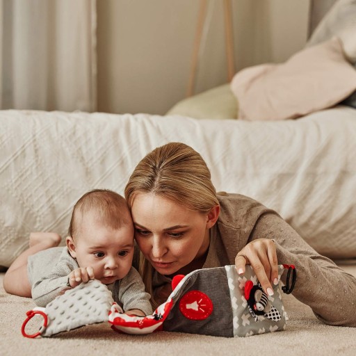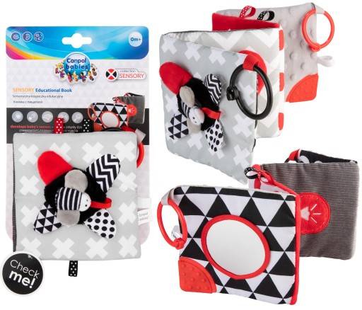 Kontrastowa książeczka edukacyjna z kolekcji SENSORY TOYS kryje wiele niespodzianek, które zajmą dziecko na długi czas.