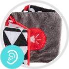 Stymuluje wzrok - dzięki czerwieni i czerni - kolorom, które noworodki widzą jako pierwsze.