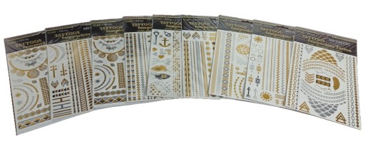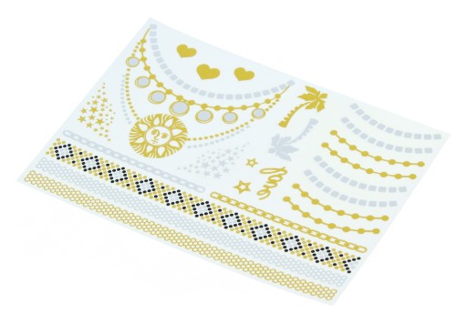 Do zamówienia minimum 5 sztuk (jeden gratis na całe zamówienie): 1 ARKUSZ TATUAŻY METALICZNYCH, WZORY WYSYŁAMY LOSOWO.