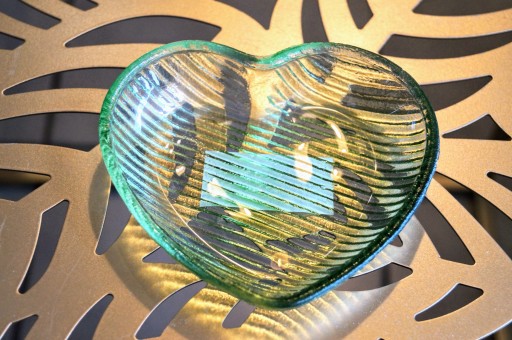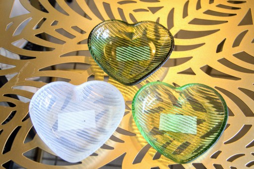 Dekoracyjny talerz/miseczka ze strukturalnego szkła, w kształcie serca.
