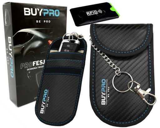 BuyPro Pokrowiec: wykonany jest z włókna węglowego, a wnętrze wykonane jest z wysokiej jakości tkaniny ekranującej. Bardzo wytrzymały i elegancki. Wymiary zostały dobrane tak aby każdy kluczyk samochodowy się zmieścił. Pokrowiec posiada dwie kieszenie jedna służy do blokowania sygnału, druga natomiast do odblokowania możesz przechowywać kluczyk w niej np podczas jazdy. Ponadto możesz przechowywać w pokrowcu dowód osobisty,prawo jazdy, karty płatnicze aby chronić je przed kradzieżą danych.