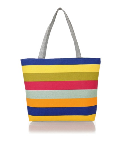 Funkcjonalna i praktyczna torba w kolorowe paski. Idealna na plażę jak i zakupy. Może stanowić dopełnienie miejskiej letniej stylizacji.