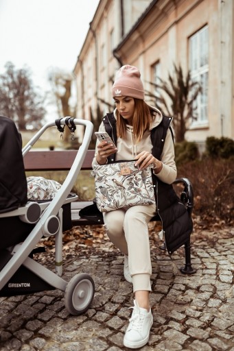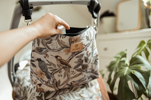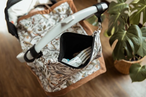 Elegancki i bardzo pojemny organizer na wózek stworzony z myślą o potrzebach mam i dzieci.
