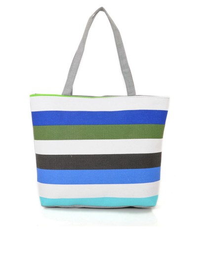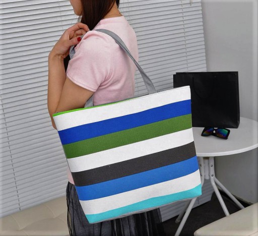 Funkcjonalna i praktyczna torba w kolorowe paski. Idealna na plażę jak i zakupy. Może stanowić dopełnienie miejskiej letniej stylizacji.
