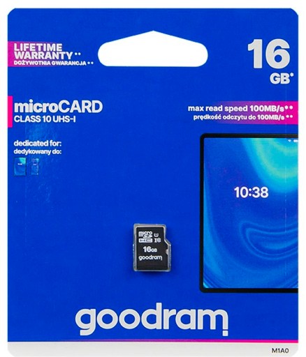 Wysokiej jakości karta pamięci micro-SD polskiej marki Goodram idealnie sprawdza się w najnowocześniejszych urządzeniach. Niezwykle szybki interfejs UHS-I pozwala na pełne wykorzystanie atutów nowoczesnych smartfonów i tabletów. Jest kompatybilny wstecz z urządzeniami obsługującymi standard pracy SD 2.0 - karta będzie pracowała z minimalnymi parametrami pracy odpowiadającymi 10 klasie prędkości (min. 10 MB/s).