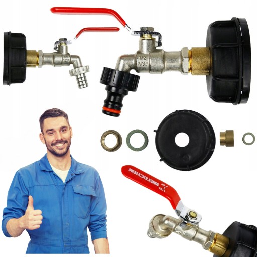 💦 Metalowy kran czerpalny 3/4" z plastikową nakrętką, zawór do zbiorników typu mauser 1000l IBC NKR3/4