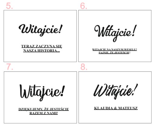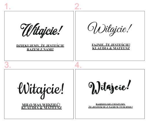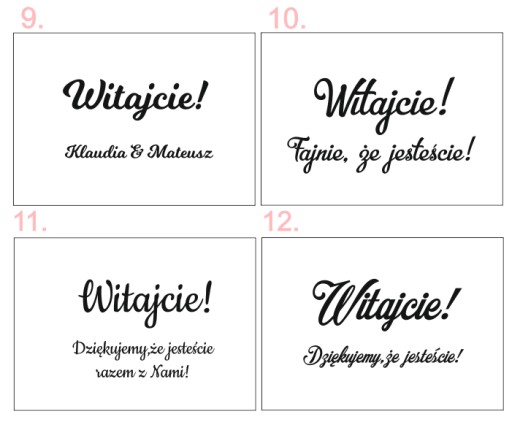 Piękna, elegancka tablica powitalna zachwyci Twoich gości na każdej uroczystości. To nieoczywisty sposób, aby zaskoczyć gości i pokazać im, jak ważna jest ich obecność na przyjęciu.