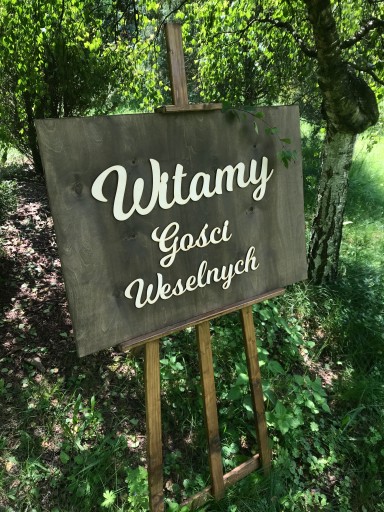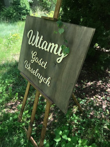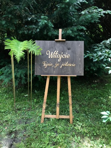 Tablicę możesz ustawić na stojaku typu sztaluga - będzie się pięknie prezentować. Idealnie sprawdzi się na sali, gdzie jest uroczystość jak i przed.