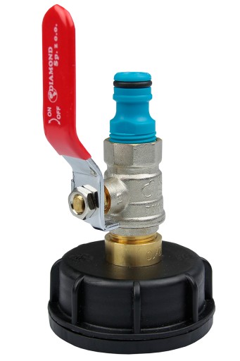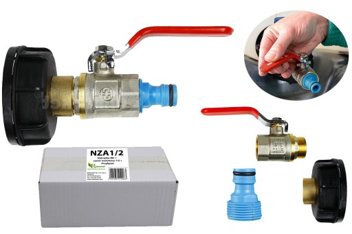 💦 Metalowy zawór 1/2" z plastikową nakrętką do zbiorników typu mauser 1000l IBC NZA1/2 + przyłącze do węża ogrodowego GRATIS!