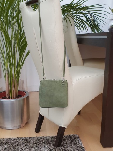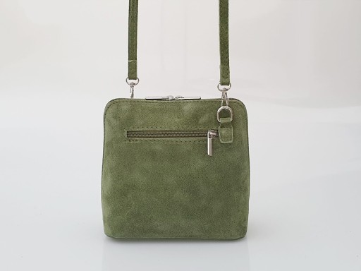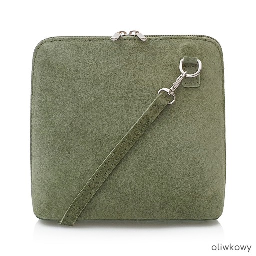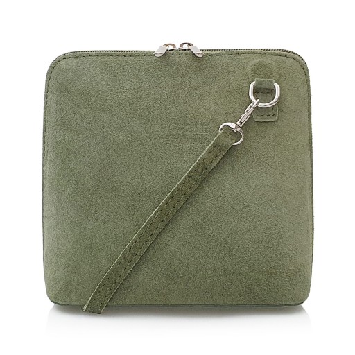Wytrzymała i solidna torebka listonoszka marki VERA PELLE ITALY w kolorze OLIWKOWYM. Wykonana została bardzo starannie z dbałością o najmniejsze szczegóły z najwyższej jakości skóry naturalnej zamszowej. Szwy są proste i staranne. Posiada długi pasek o długości 130 cm, dzięki czemu możesz torebkę wygodnie nosić na ramieniu. Będzie pasowała do niemal każdej stylizacji. Jak na swój wymiar jest pojemna, dzięki czemu bez trudu zmieścisz telefon komórkowy i inne drobiazgi potrzebne na co dzień. W środku jest wykończona podszewką i posiada przez środek przegrodę zamykaną na suwak. Pozwoli to bez trudu oddzielić np. telefon od kluczy.