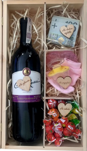 Skrzynka posiadać może max 6 przegródek, które pomieszczą dowolne spersonalizowane prezenty.