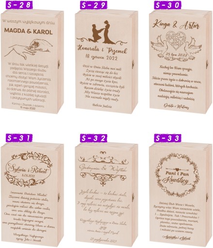 Skrzyneczki wykonane z drewna - mogą posiadać sęki lub naturalne kolory drewna.