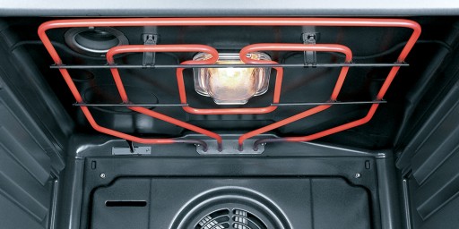 Ogromną zaletą żarówek halogenowych jest stała barwa światła przez cały okres ich pracy. Dlatego oświetlenie halogenowe zapewnia optymalną widoczność we wnętrzu urządzenia, bez konieczności zapalania światła na zewnątrz.