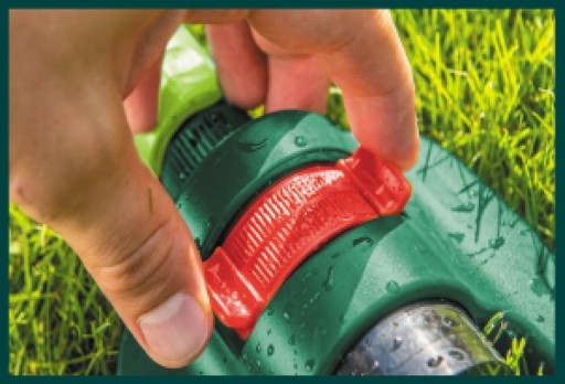 - Zraszacz posiada prostą regulację zasięgu zraszania.