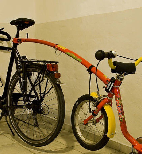 - istnieje również możliwość dokupienia jeszcze jednego, dodatkowego zaczepu do roweru osoby dorosłej lub do rowerka dziecka.