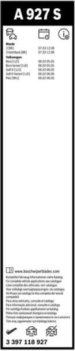 - Rodzaj wycieraczki: Pióro wycieraczki bezprzegubowe