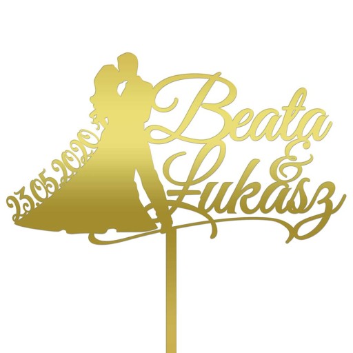 W formularzu zamówienia prosimy o podanie dwóch IMION oraz DATY, które mają być umieszczone na topperze, np. 22.08.2020, Natalia & Tomasz.