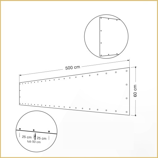 Stabilne - Dzięki optymalnemu rozmieszczeniu metalowych oczek co 50cm lub 25cm za dodatkową opłatą (należy kupić osłonę w zestawie z usługą montażu dodatkowych oczek) na górze, dole oraz 4 oczek na brzegach materiału, osłony stabilnie przylegają do powierzchni balkonu, balustrady czy ogrodzenia.