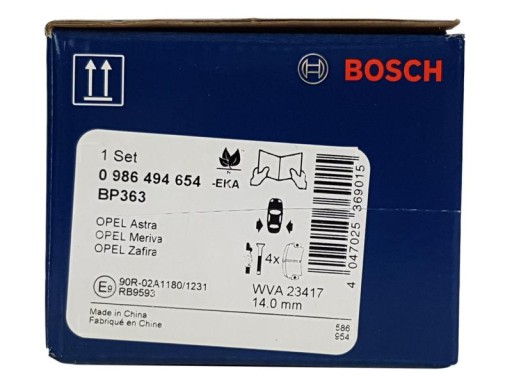 ЗАДНИЕ КОЛОДКИ BOSCH OPEL ASTRA GH MERIVA COMBO