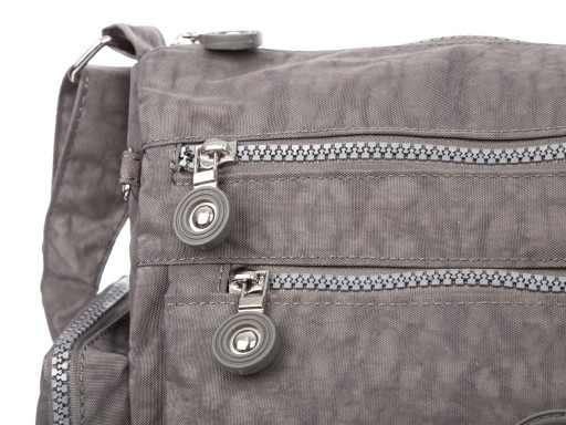 - Z przodu, torba posiada dwie poziome kieszenie, także zamykane na suwaki.