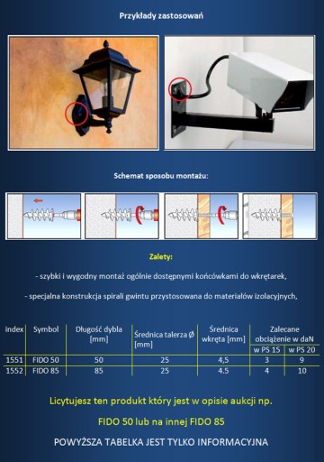 Na aukcjach posiadamy kołki różnych producentów i kolorów. Bez względu na wybór producenta parametry techniczne pozostają jednakowe. Natomiast w razie potrzeby zakupu konkretnego producenta/koloru konieczne jest sprawdzenie jego dostępności. W przeciwnym razie producenci/kolory są wybierani losowo.
