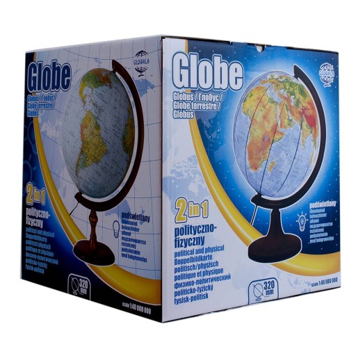 Fizyczno-polityczny GLOBUS biurkowy, podświetlany