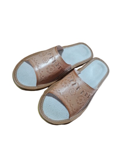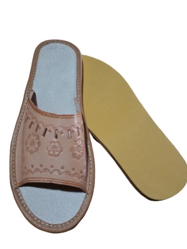 Domowe pantofle laczki klapki skórzane damskie wykonane w 100% z najwyższej jakości skóry naturalnej w Polsce na Podhalu Są bardzo trwałe i wytrzymałe. Miękka skórzana profilowana wkładka ortopedyczna zapewnia poczucie maksymalnego komfortu. Podeszwa antypoślizgowa w całości wykonana jest z lekkiej gumy antypoślizgowej [styrogum] zapewniająca trwałość i bezpieczeństwo