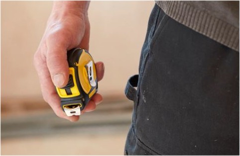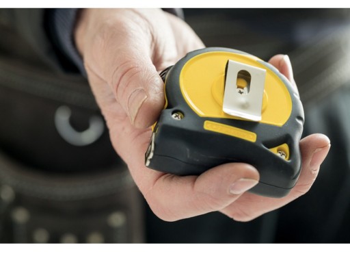 - Zaczep mierniczy na taśmie umożliwia dokładny pomiar wewnętrzny i zewnętrzny