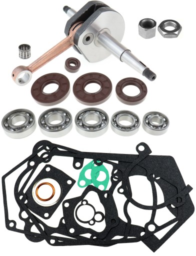 WAŁ KORBOWY + ŁOŻYSKA + USZCZELNIACZE + KOMPLET USZCZELEK SILNIKA + NAKRĘTKI WAŁU