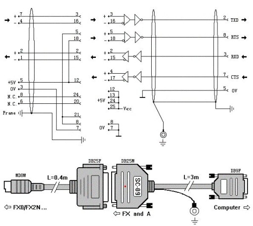 Za pomocą przewodu możemy programować sterowniki serii FX0N/S, FX1N/S, FX2N, FX3U, FX3G.