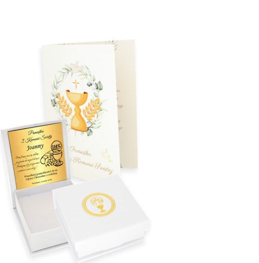 W przypadku zamówienia graweru na komunię, standardowo zapakujemy w pudełeczko komunijne oraz dodamy kartę Pamiątka Pierwszej Komunii Świętej - gratis