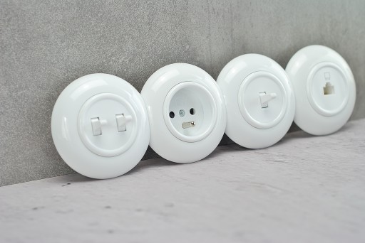 biała ramka boczna do gniazdko okrągłe osprzęt okrągły loft retro HIT