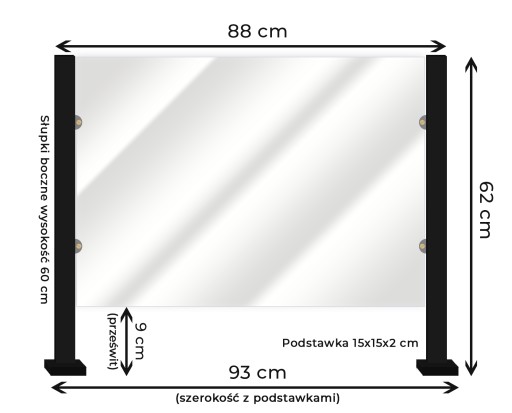 - Szyba ochronna / plexi bezbarwna 3mm: 68cm x 51cm