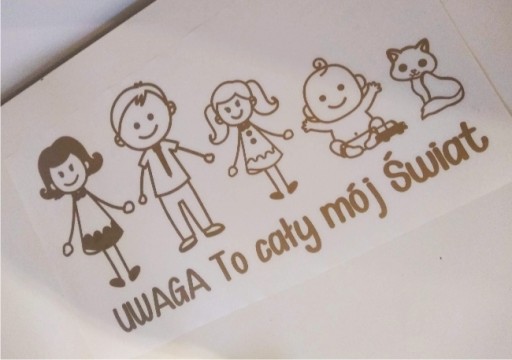 - Wymiar naklejki : 29cm długości oraz wysokość z proporcji w zależności od ilości postaci ale nie wyższą niż 17 cm ( przykładowo przy 6 postaciach ok 14cm wysokości, przy 3 postaciach ok 17 cm wysokości z napisem)