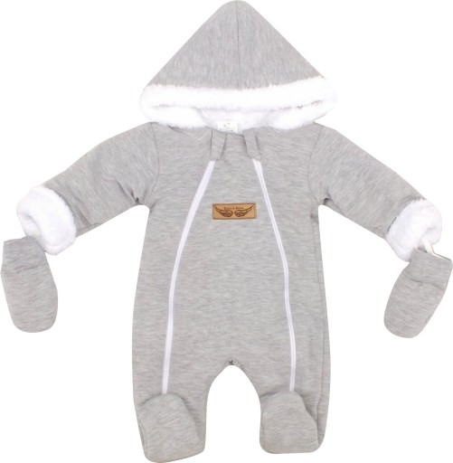 Kombinezon posiada kaptur oraz rękawiczki