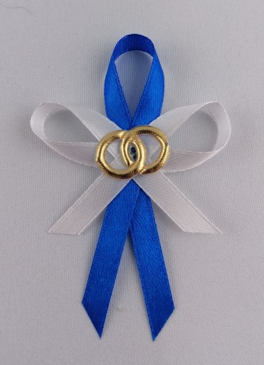 Przypinki wykonane są ręczne, ze starannością i dbałością o szczegóły. Ich wielkość to 5 cm/ 6 cm. Użyto 0,6 mm atłasowej wstążki. Każda przypinka posiada złotą aplikację obrączek. Do każdej wpięta jest szpilka.