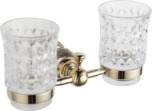 Mexen Estela podwójny kubek łazienkowy na szczoteczki montowany do ściany - złoty + szkło