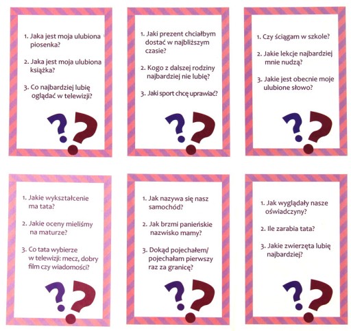 Dynamiczna gra rodzinna, w której dzieci i rodzice rywalizują odpowiadając na wiele interesujących i zabawnych pytań. Wygrywa drużyna, która odpowie na więcej pytań.