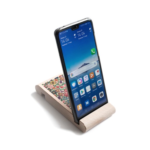 Wykonany z drewna bukowego stojak pod telefon. Wzór został naniesiony laserem UV przez co jest on niesamowicie trwały i nie blaknie.