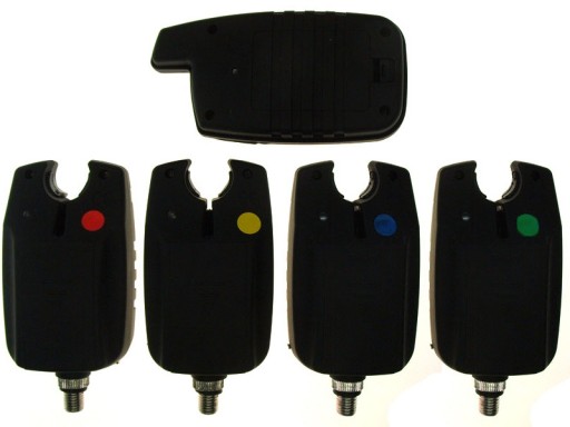 - centralka - bezprzewodowa, diody sygnalizujące branie na poszczególnych sygnalizatorach w czterech kolorach - żółty, czerwony, niebieski oraz zielony