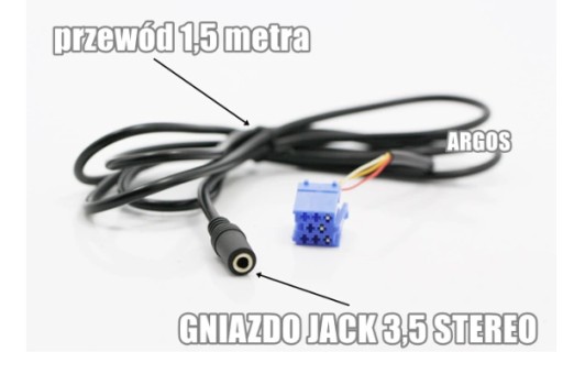 złącze Mini-gniazdo JACK 3.5mm stereo z przewodem o dł.150cm zakończonym złączem Mini-ISO_8Pin podłączanym w miejsce (zamiast) zmieniacza CD do fabrycznego radia m-ki BLAUPUNKT