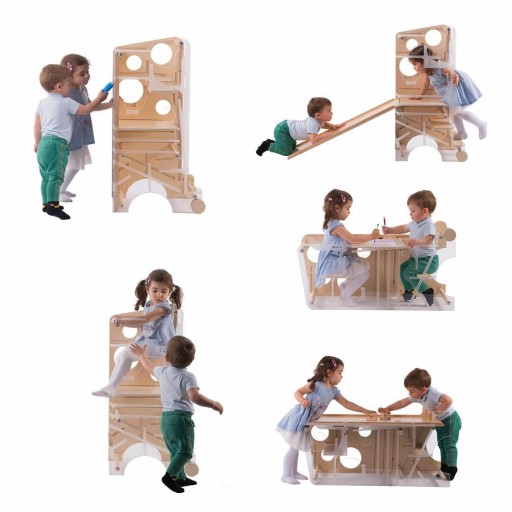 Idealnie sprawdzi się w domach urządzonych w stylu Montessori lub w małych mieszkaniach gdzie może jednocześnie spełniać funkcje wielu urzadzeń, dzięki czemu można zaoszczędzić sporo miejsca.