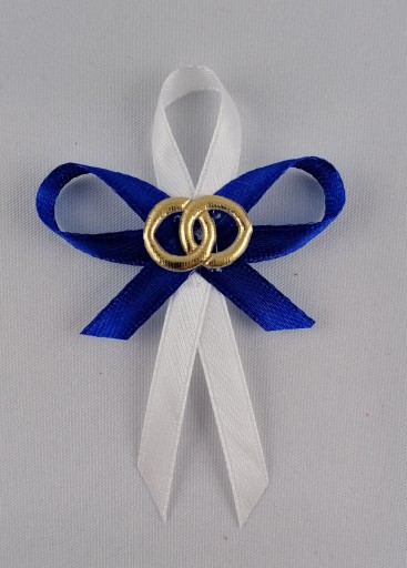 Przypinki wykonane są ręczne, ze starannością i dbałością o szczegóły. Ich wielkość to 5 cm/ 6 cm. Użyto 0,6 mm atłasowej wstążki. Każda przypinka posiada złotą aplikację obrączek. Do każdej wpięta jest szpilka.